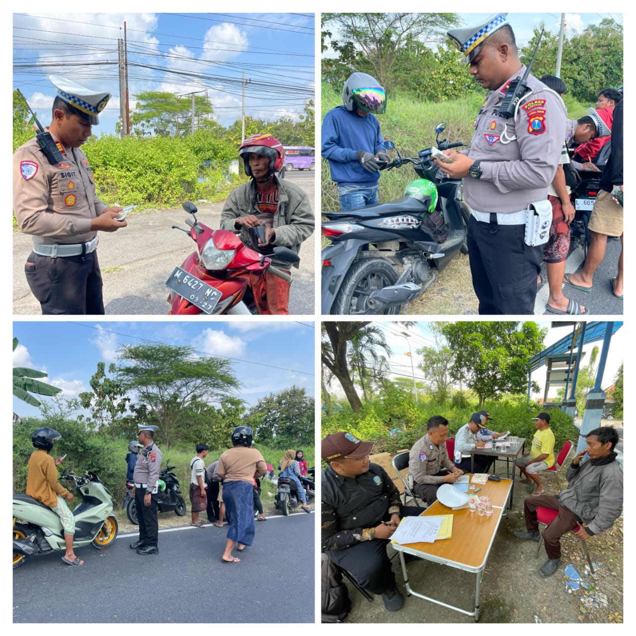 “Seperti hari ini kita berhasil menjaring dan menindak sebanyak 132 tilang serta menyita BB kendaraan 4 unit roda dua, dan BB roda empat 4 unit STNK sebanyak 124 lembar tilang, sedangkan Dhisub melakukan penindakan sebanyak 24 sedangkan Bapenda melakukan penindakan sebanyak 35,”ucap AKP Sigit.