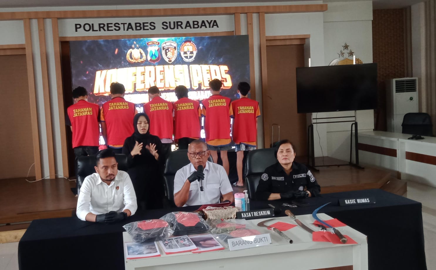 SURABAYA,— Kepolisian Resor Kota Besar (Polrestabes) Surabaya melalui Unit Jatanras Satreskrim berhasil mengungkap kasus pengeroyokan yang terjadi di kawasan Wiyung. Dalam press release yang digelar pada Rabu (25/6), polisi menyampaikan bahwa enam orang ditetapkan sebagai tersangka dalam insiden yang diduga berkaitan dengan konflik antar kelompok perguruan silat.