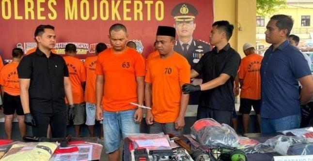Mojokerto – Satreskrim Polres Mojokerto berhasil meringkus dua pelaku tindak kejahatan yang meresahkan masyarakat. Pelaku pertama, berinisial MU (41), merupakan jambret kalung emak-emak yang sempat salah sasaran karena menjambret kalung imitasi. Sementara pelaku kedua, ASS (28), ditangkap karena membobol rumah kosong di wilayah Mojokerto dan Sidoarjo.