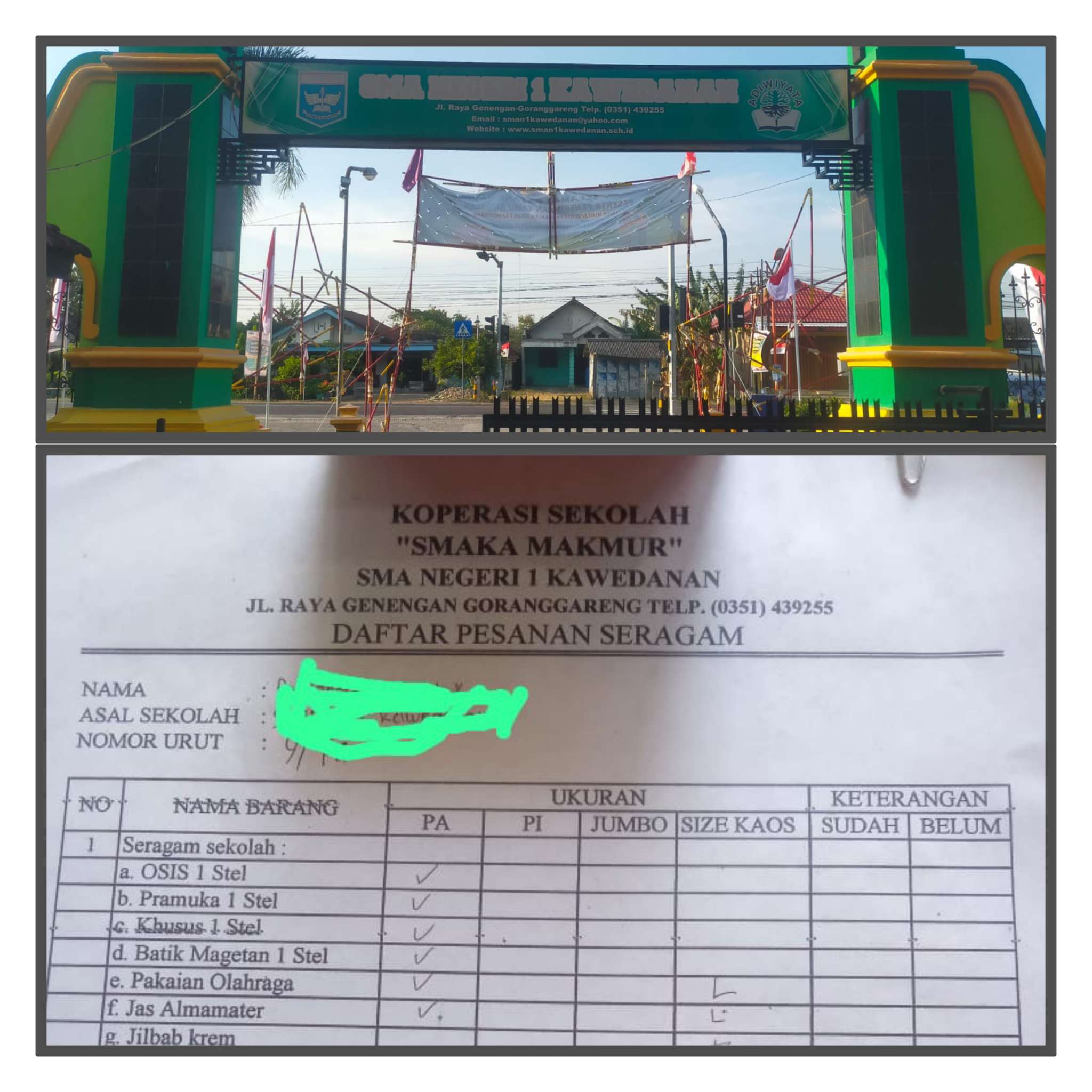 Hasil Penjualan Seragam Sekolah di SMA Negeri 1 Kawedanan Diduga Dinikmati Bersama