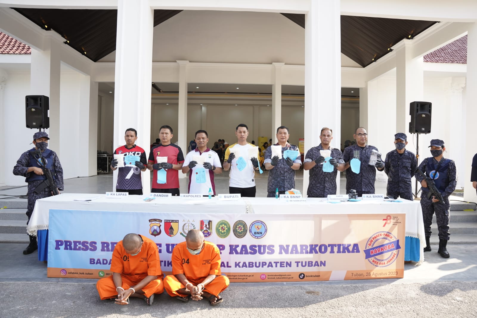 TUBAN,Transpos.id – Bupati Tuban, Aditya Halindra Faridzky, SE., secara tegas mendukung upaya pemberantasan narkotika di Kabupaten Tuban. Hal tersebut disampaikannya saat Press Release pengungkapan kasus tindak pidana narkotika golongan I jenis Carnophen oleh Badan Narkotika Nasional (BNN) Kabupaten Tuban, Senin (28/08/2023).