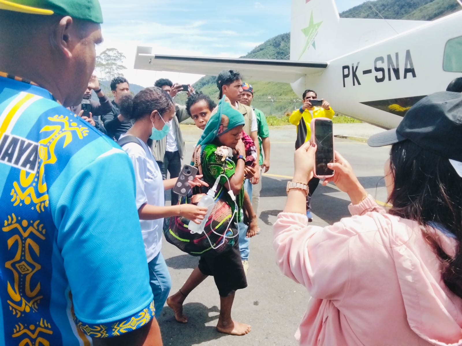 Puncak, Papua Tengah – Aparat keamanan bersama tenaga medis menevakuasi anak berusia 6 tahun, warga asal Distrik Sinak, Kabupaten Puncak, Provinsi Papua Tengah. Evakuasi anak perempuan yang menjadi korban dari aksi kekerasan kelompok bersenjata dilakukan pada Sabtu, 18 April 2026, pukul 11.28 hingga 11.50 WIT di Bandara Mulia, Distrik Muara, Kabupaten Puncak Jaya, menggunakan pesawat Smart Aviation PK-SNA dengan tujuan Bandara Douw Aturure, Nabire.