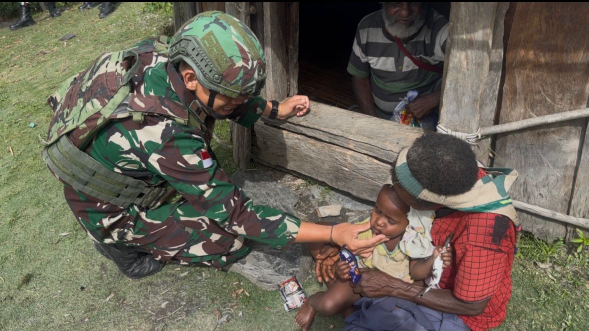 Puncak Jaya – Satgas Yonif 715/Mtl melalui Pos Ramil Yambi terus menebar cinta dan kasih di sekeliling masyarakat Distrik Yambi yang membuktikan bahwa peran penting TNI selalu berada di tengah-tengah masyarakat dan selalu di cintai masyarakat di wilayah perbatasan khususnya Puncak Jaya, Papua Tengah, Senin (16/05/2025).