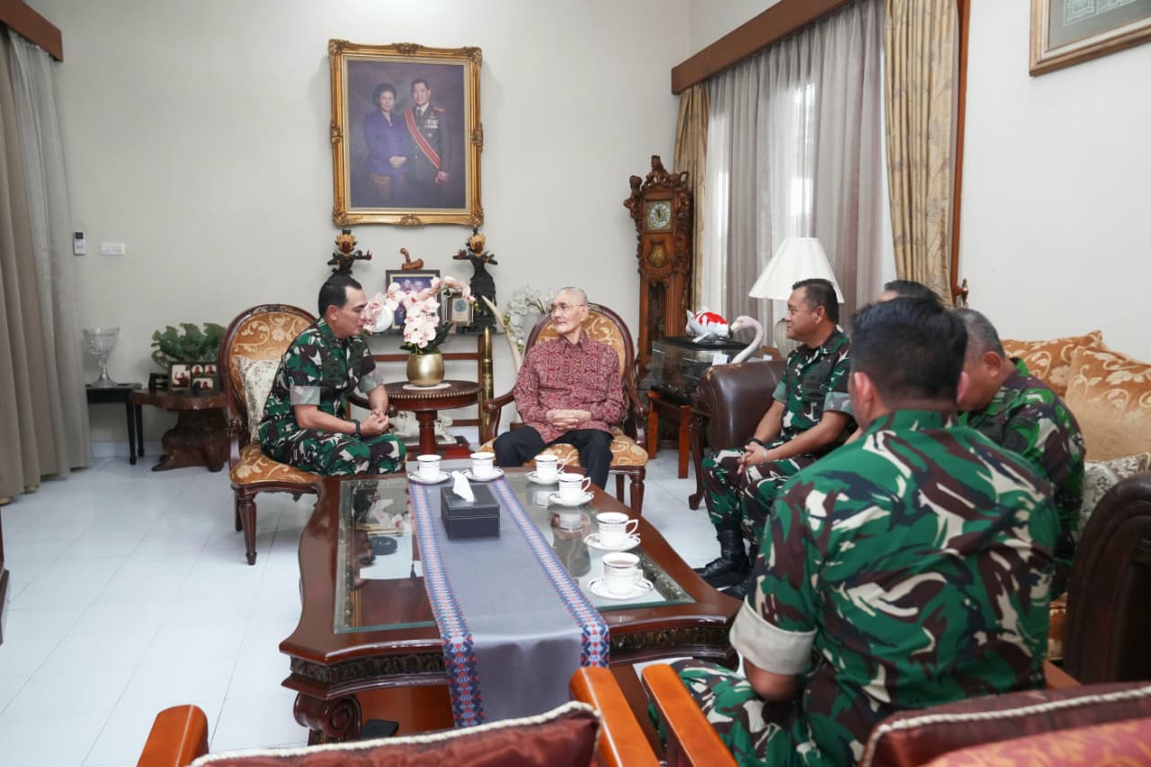Jakarta – Dalam rangka memperingati HUT ke-80, Tentara Nasional Indonesia (TNI) melaksanakan anjangsana ke kediaman mantan Panglima TNI ke-10, Jenderal TNI (Purn) Try Sutrisno di Jakarta Pusat, Kamis (25/9/2025), dipimpin oleh Pa Sahli Tingkat III bidang Jahpers Sahli Panglima TNI Laksda TNI Ari Hendrawan.
