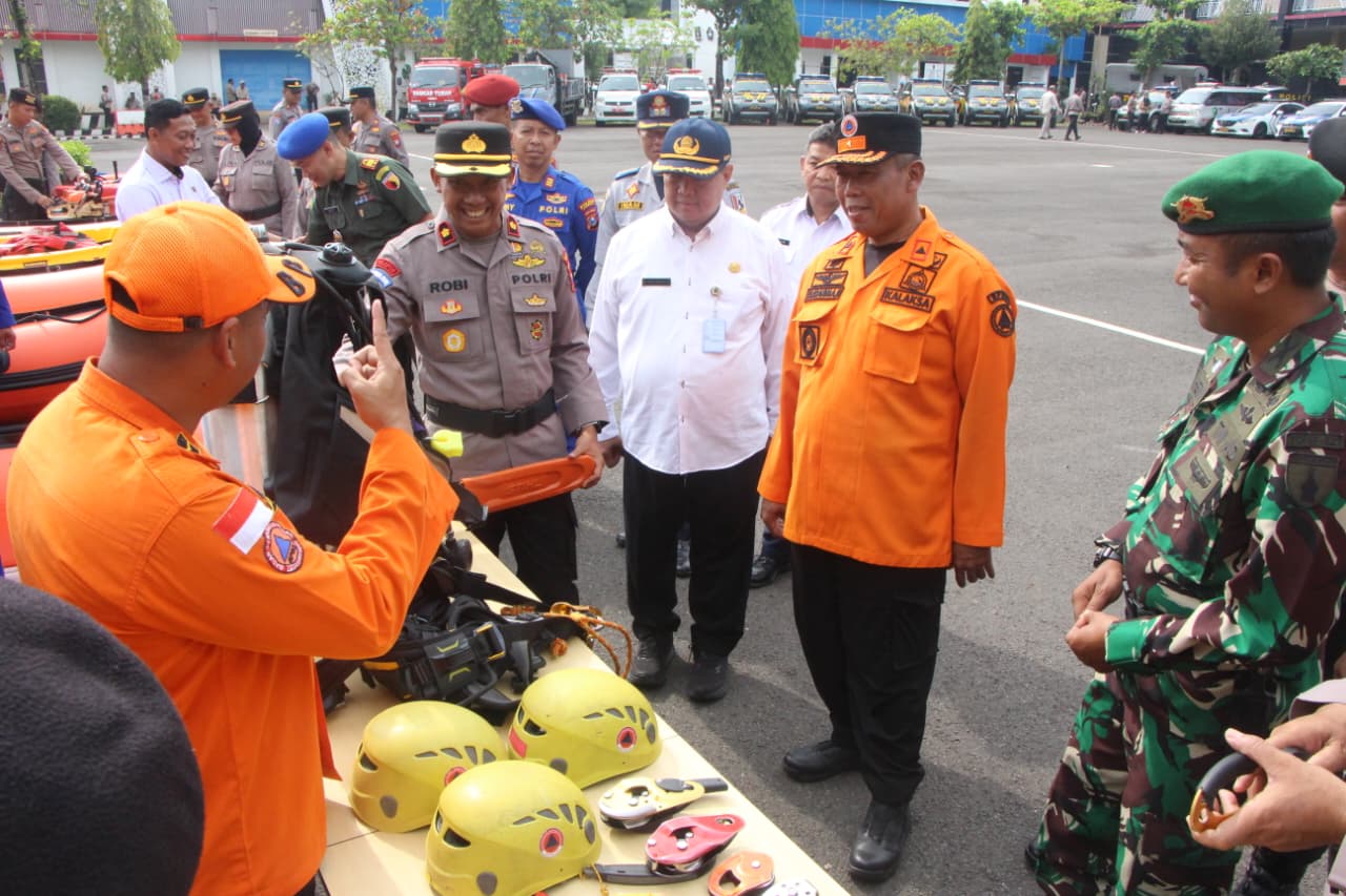 Selain apel, kegiatan juga diisi dengan pengecekan perlengkapan dan kendaraan operasional dari mulai dari perahu karet, alat evakuasi, hingga perlengkapan medis.