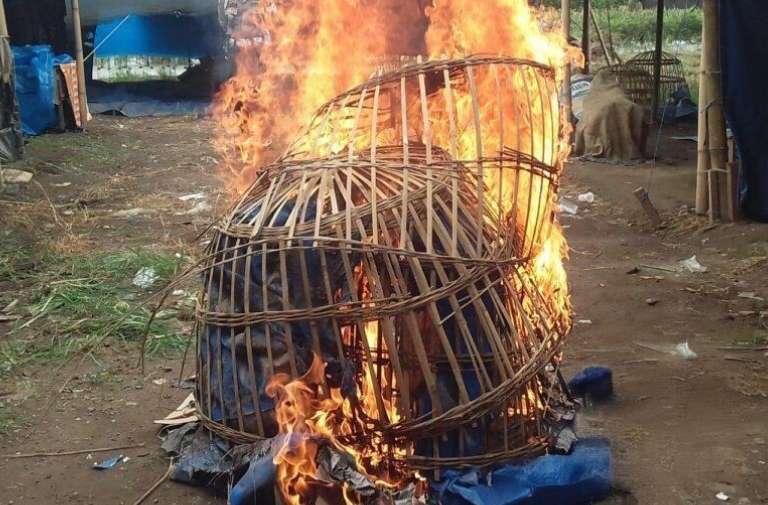 Untuk antisipasi dan jadi peringatan kepada meraka, maka kami musnahkan fasilitas-fasilitas yang diduga jadi alat judi sabung ayam di sini”, jelasnya.