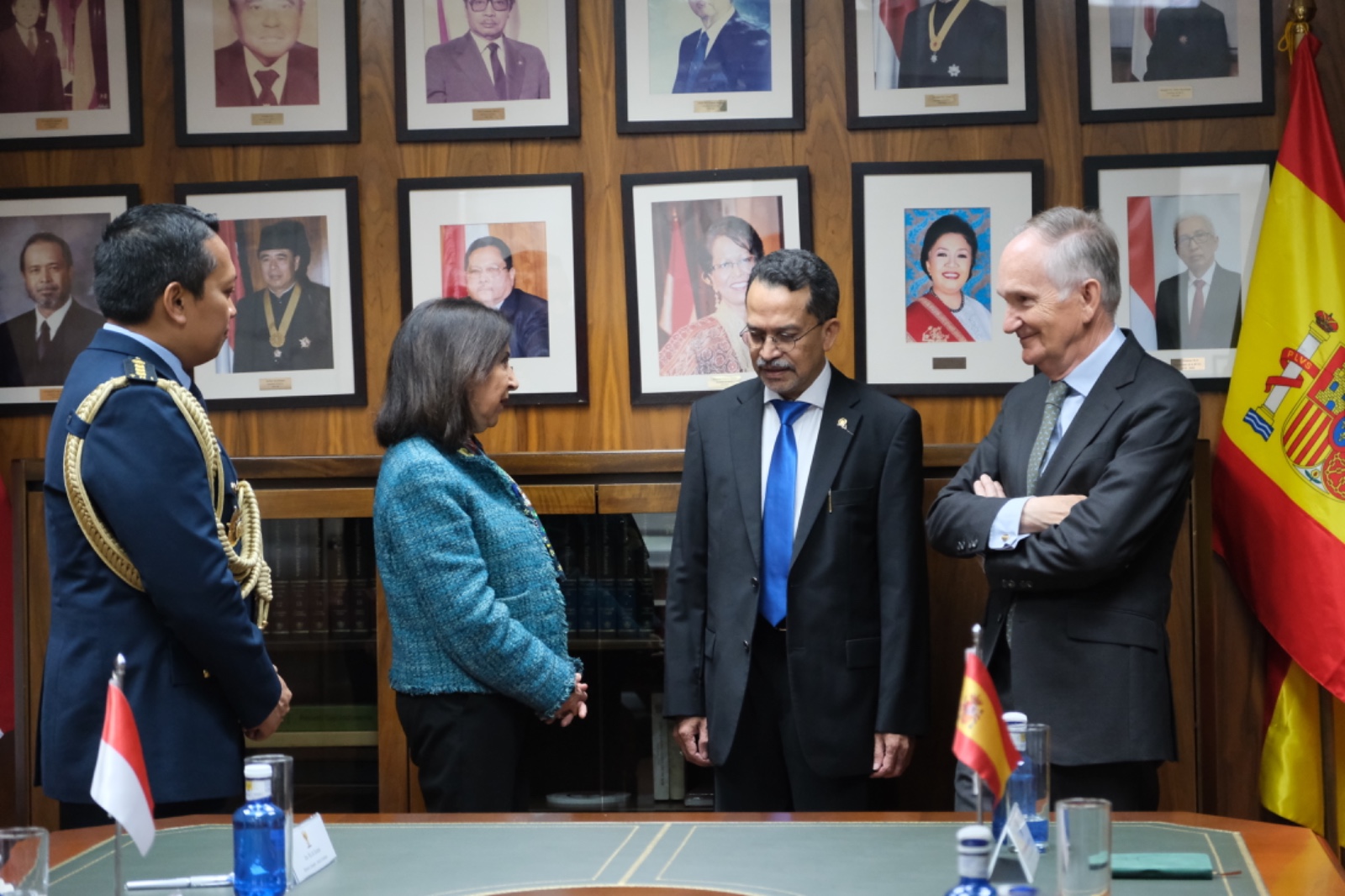 Spanyol – Asisten Pertahanan (Athan) RI Kolonel Pnb Agus Dwi Aryanto beserta Kepala Kanselerai Ria Uki Suharsi mendampingi Duta Besar RI di Madrid Dr. Muhammad Najib, menerima kunjungan Menteri Pertahanan (Menhan) Spanyol Margarita Robles Fernández dalam rangka meningkatkan hubungan diplomasi pertahanan antara Indonesia dan Spanyol, bertempat di Kantor Kedutaan Besar Republik Indonesia (KBRI) Madrid, Spanyol. Rabu (8/4/2026).
