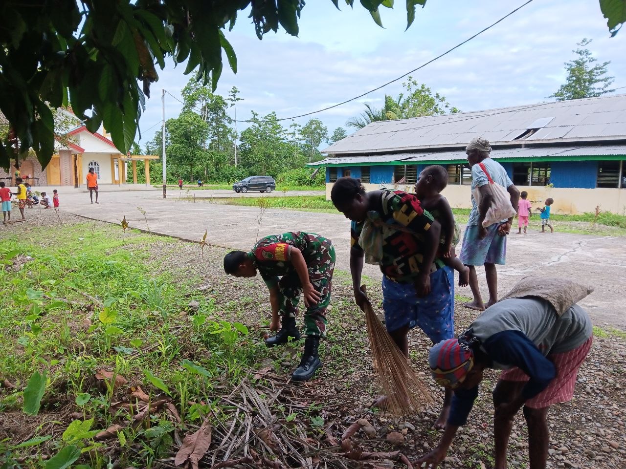 Pelda Sumantri menyampaikan bahwa gotong royong ini bertujuan menumbuhkan kebersamaan serta meningkatkan kepedulian masyarakat terhadap kebersihan lingkungan, khususnya tempat ibadah. (Pendim 1710/Mimika)