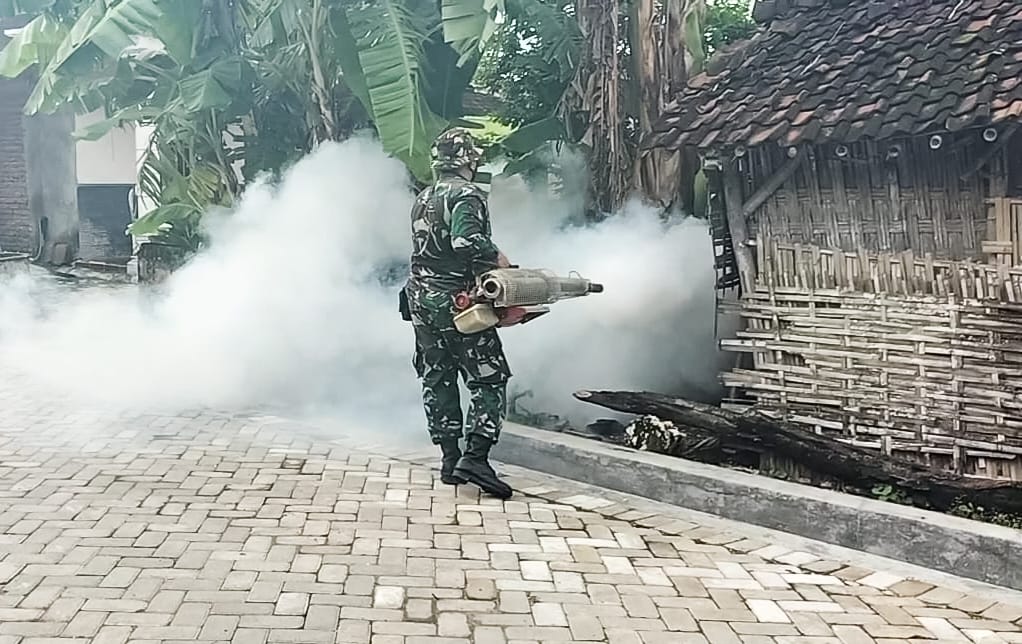 Bojonegoro, – Bintara Pembina Desa atau Babinsa Koramil 09/Sumberrejo Kodim 0813 Bojonegoro, Pelda Yepri Irawan, membantu petugas kesehatan Puskesmas Sumberrejo melaksanakan fogging di Dusun Sendangijo RT.005, 006 dan 007 RW.002 Desa Sendangagung Kecamatan Sumberrejo Kabupaten Bojonegoro.