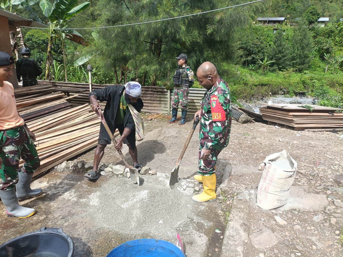 Timika, transpos.id – Dalam rangka mewujudkan kemanunggalan TNI – Rakyat, Babinsa Koramil 1710-04/Tembagapura Pelda Indra R dan Serka Ikbertus Sumel melalui giar Binternya hari ini, membantu memperbaiki rumah di salah satu warga binaan an. bapak Anis Magai di Kp. Banti 2, Distrik Tembagapura, Kab. Mimika, Selasa (25/11/2025).