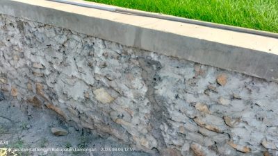 Bahkan diduga kuat campuran semen dengan pasir dan pemasangan batu tidak memperhatikan aturan dan petunjuk teknis yang ada.