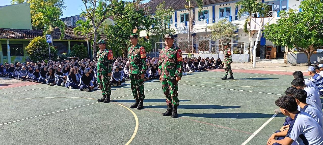 Bojonegoro||transpos.id – Jajaran Bintara Pembina Desa (Babinsa) Koramil 09/Sumberrejo Kodim 0813 Bojonegoro, memberikan penguatan bela negara dan Wawasan Kebangsaan (Wasbang) terhadap pelajar SMA N 1 Sumberrejo Kecamatan Sumberrejo Kabupaten Bojonegoro. Rabu (17/07/2024).