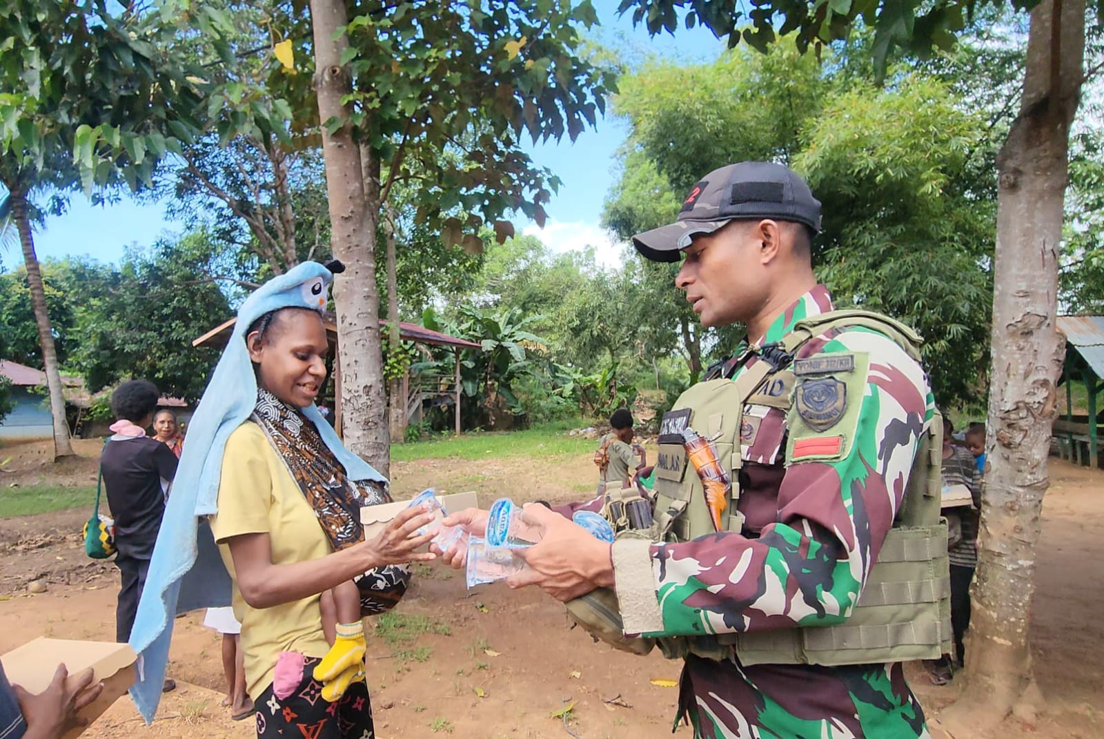Salah satu warga yang menerima bantuan, Vera Balaigaze (42), tak dapat menyembunyikan rasa syukur dan harunya. “Saya sangat bersyukur dan senang. Terima kasih TNI sudah datang bawa makanan. Tuhan berkati selalu TNI yang jaga kami di kampung ini,” ungkap Vera dengan mata berkaca-kaca.
