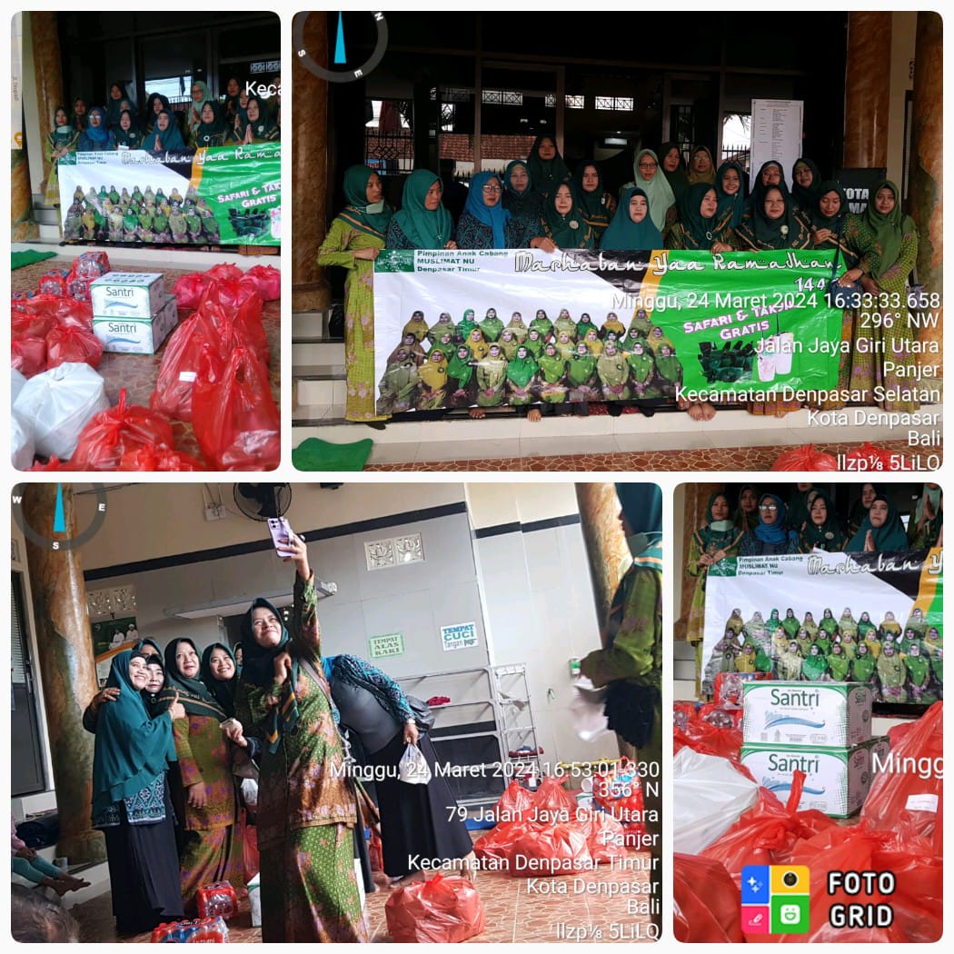 Marhaban Ya Ramadhan, dalam menjelang malam Ke 13 Ramadhan, segenap pimpinan anak cabang muslimat Nahdatul Ulama (NU) Denpasar Bali,mengadakan kegiatan safari Ramadhan sesi yang ke 2 kalinya, dengan membagi takjil gratis pada masjid-masjid disekitar Denpasar Timur, (minggu 24-03-2024 pukul 16-30 Wib).