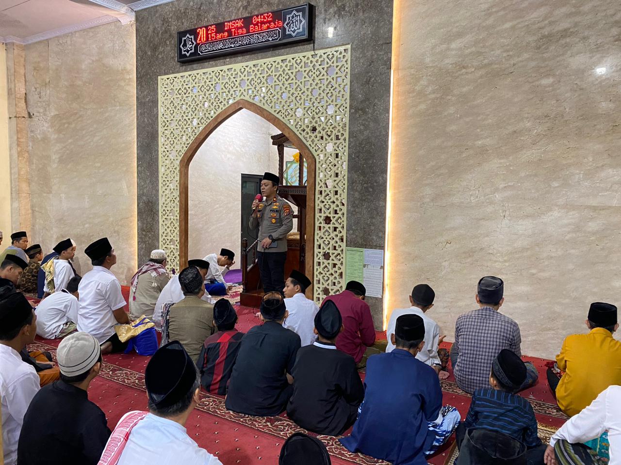 TANGERANG, Transpos.id- 18 Maret 2024 – Dalam rangka memperkuat kesadaran akan keamanan dan ketertiban masyarakat (kamtibmas) selama bulan suci Ramadhan, Kasat Reserse Kriminal (Kasat Reskrim) Polresta Tangerang aktif menyampaikan pesan-pesan kamtibmas kepada jamaah yang berkumpul untuk melaksanakan ibadah shalat tarawih di Masjid Jami Al-Falah, Kecamatan Balaraja, Kabupaten Tangerang, Provinsi Banten.