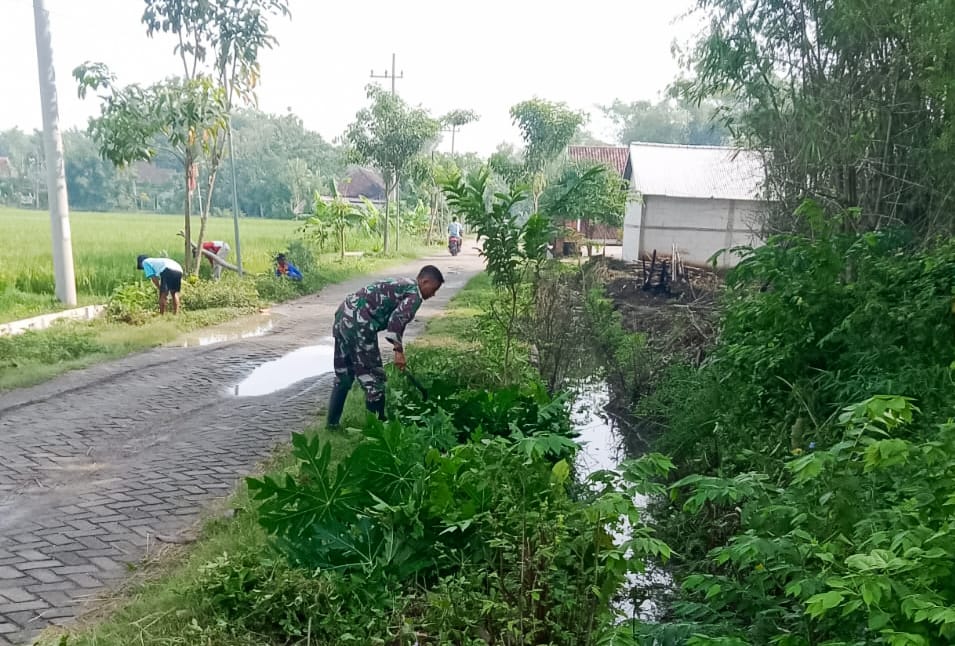 BOJONEGORO, – Bersama Pemerintah Desa (Pemdes), Bintara Pembina Desa (Babinsa) Koramil 20/Malo Kodim 0813 Bojonegoro melaksanakan karya bakti lingkungan membersihkan kanan kiri jalan poros desa, tepatnya disepanjang jalan Tameng Jati Desa Sudah Kecamatan Malo Kabupaten Bojonegoro, Minggu (25/2/2024).