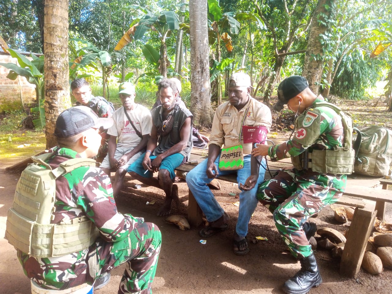 Salah satu warga yang menerima pelayanan langsung adalah Bapak Sergius Pain Mbanggu (47), seorang petani setempat yang mengeluhkan gangguan kesehatan ringan. Tim kesehatan Satgas memberikan penanganan medis dan edukasi agar Bapak Sergius dapat kembali beraktivitas secara optimal.
