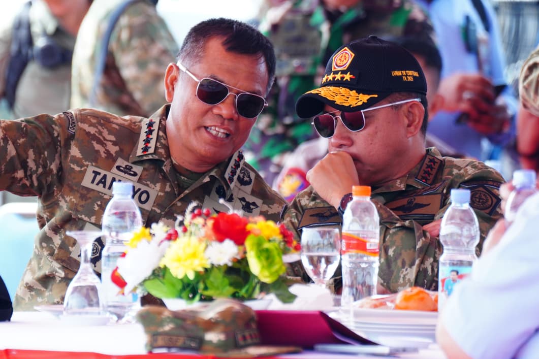 Menteri Pertahanan RI Sjafrie Sjamsoeddin, didampingi Panglima TNI Jenderal TNI Agus Subiyanto, Wakil Panglima TNI, Jaksa Agung, Kepala BPKP, serta sejumlah pejabat tinggi negara, turut menyaksikan langsung jalannya latihan. Kehadiran para pejabat tersebut mencerminkan dukungan penuh pemerintah terhadap penguatan kesiapsiagaan dan profesionalisme prajurit TNI.