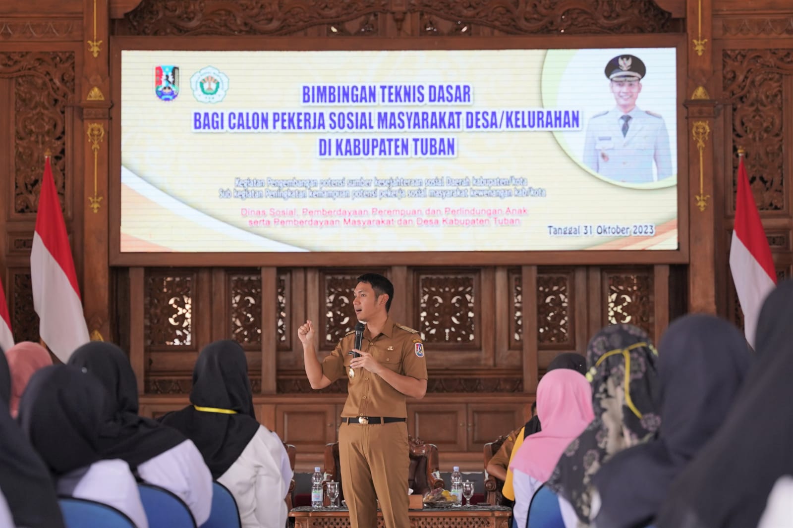 Tuban,transpos.id – Bupati Tuban Aditya Halindra Faridzky, SE membuka  Bimbingan Teknis Dasar bagi Calon Pekerja Sosial Masyarakat (PSM) Desa/ Kelurahan di Kabupaten Tuban tahun 2023 di Pendapa Kridha Manunggal Tuban, Selasa (31/10).