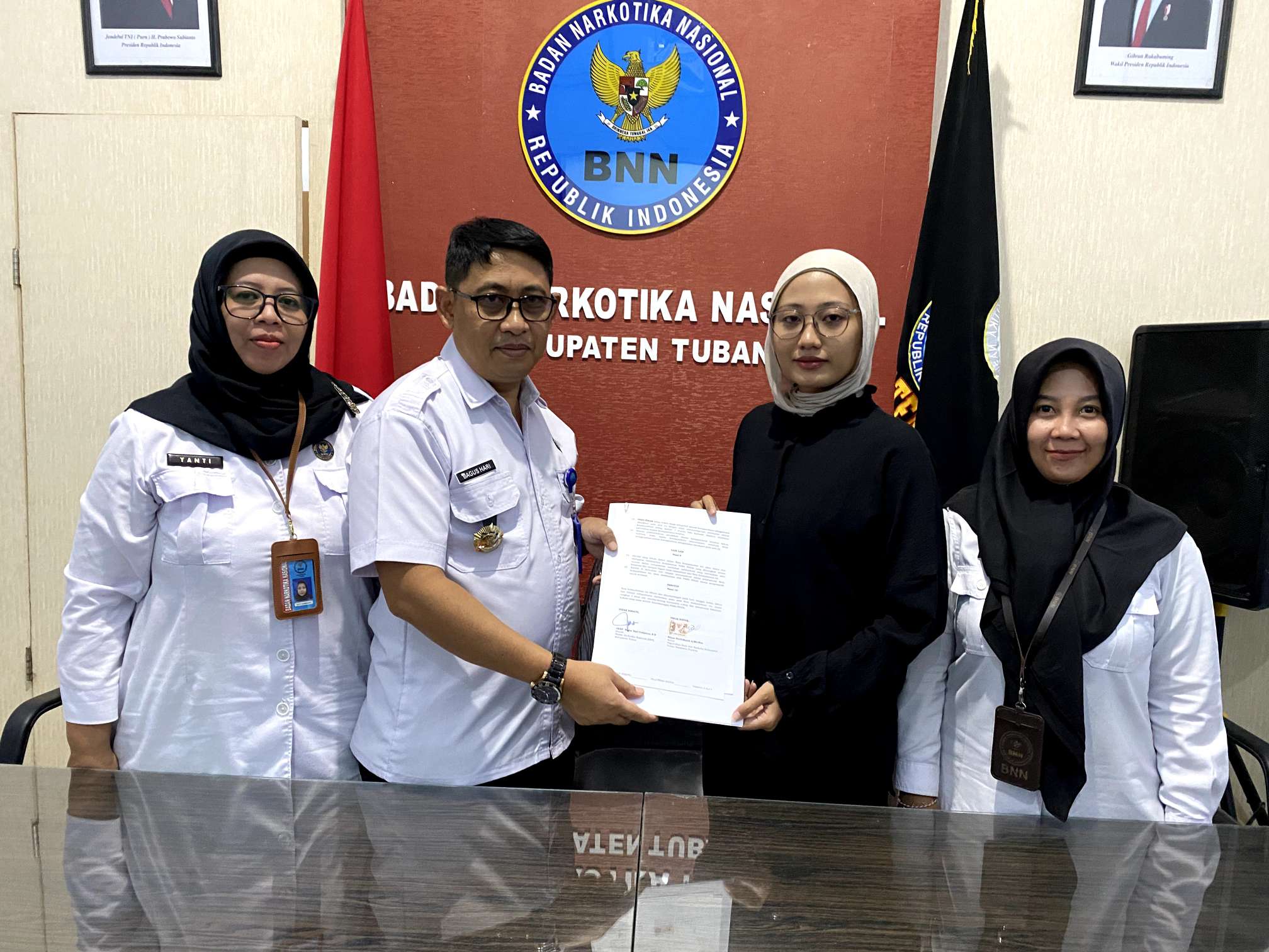 Tuban — Badan Narkotika Nasional (BNN) Kabupaten Tuban secara resmi menandatangani Nota Kesepahaman (MoU) dengan Paguyuban Duta Anti Narkoba Kabupaten Tuban “Drestanta Triyatsa”, Rabu (30/7) di Kantor BNNK Tuban sebagai bentuk sinergi strategis dalam upaya pencegahan dan pemberantasan penyalahgunaan narkotika di masyarakat, khususnya di kalangan generasi muda.