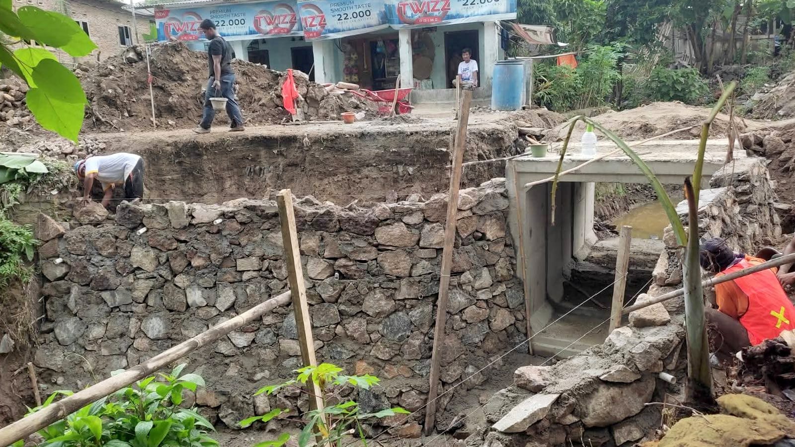Adapun pengerjaan yang dilakukan meliputi penggantian gorong-gorong lama dengan lima buah box culvert precast berukuran 2×2 meter, serta perbaikan talud sepanjang 220 meter dengan tinggi 1 meter dan lebar 40 cm menggunakan pasangan batu.