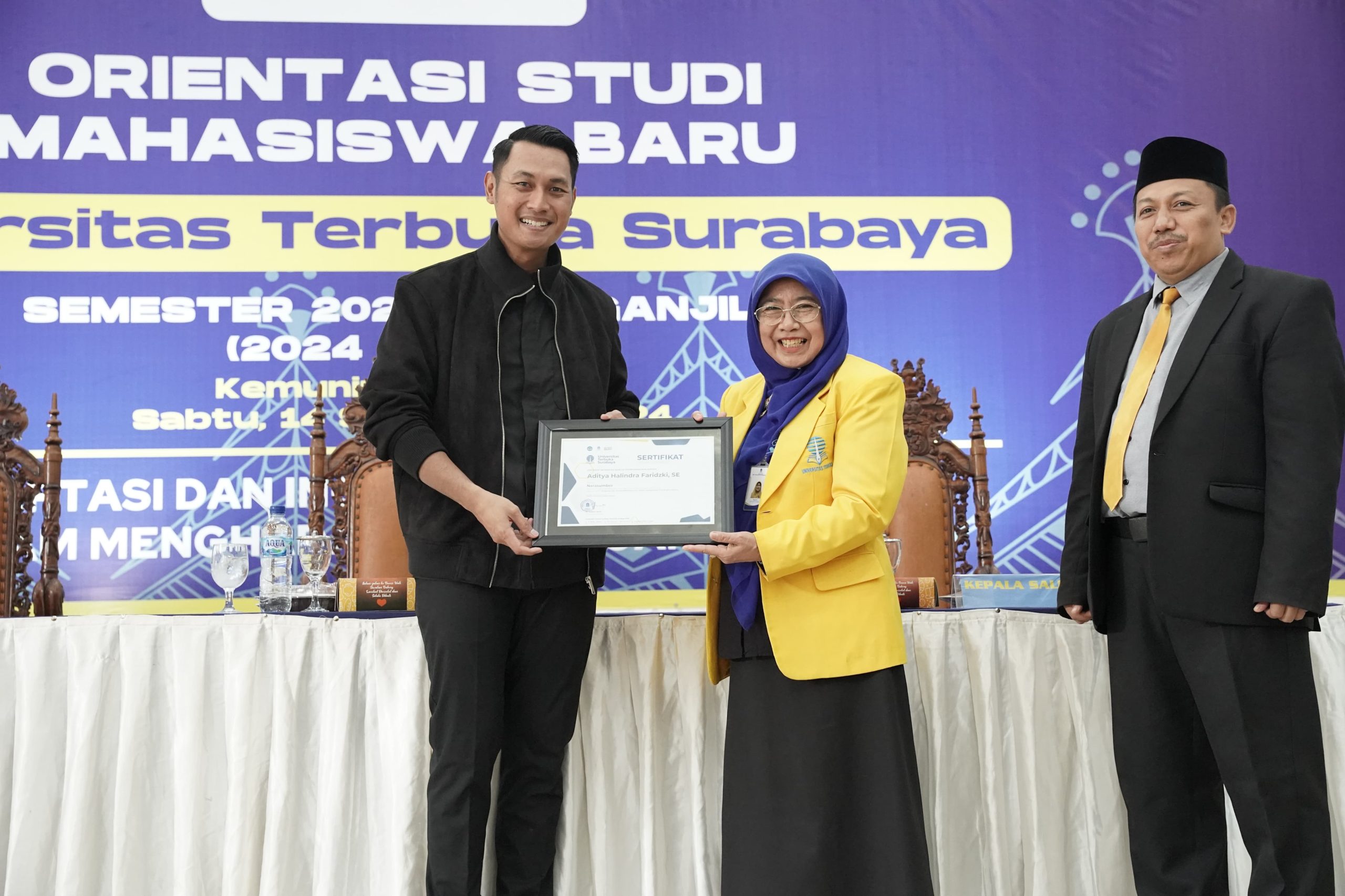 Acara ini juga dihadiri oleh Direktur UT Surabaya, Dr. Suparti, M.Pd., dan Kepala Salut Tuban, Dr. M. Ansori, S.Pd.i., M.M. Kegiatan ditutup dengan deklarasi mahasiswa baru terkait komitmen anti-menyontek, anti-plagiasi, dan anti-narkoba.