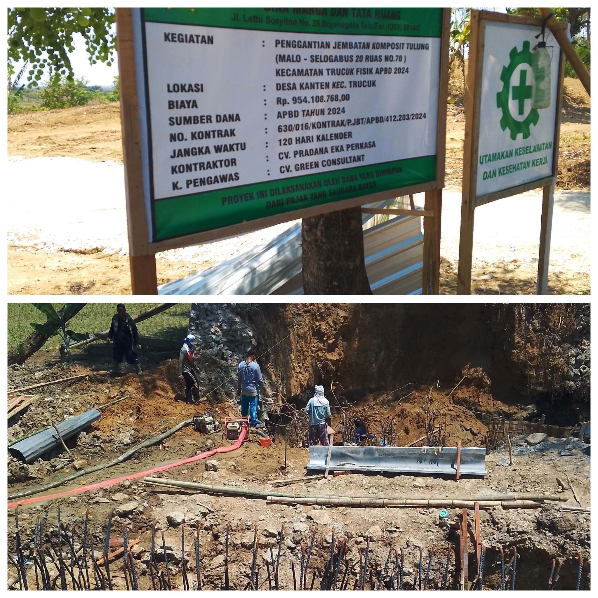 Bojonegoro, transpos.id – Proyek Pembangunan pergantian jembatan komposit Tulung (malo-selogabus 20 ruas 70) Kecamatan Trucuk, Kabupaten Bojonegoro di duga melanggar keselamatan pekerja.