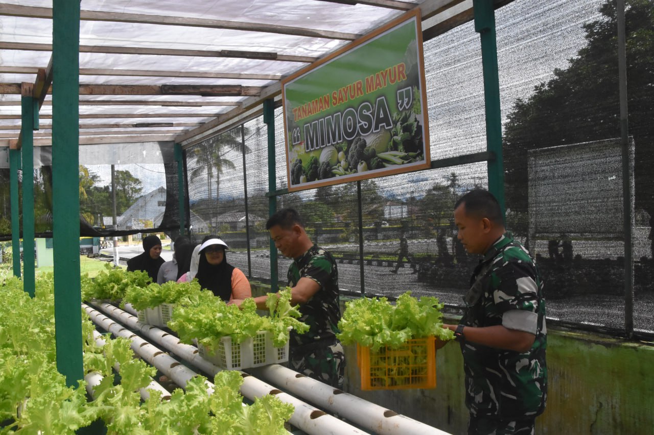 Timika, transpos.id – Didampingi Ketua Persit KCK Cab. XXXV, Dandim 1710/Mimika Letkol Inf M. Slamet Wijaya, S.Sos,.M.Han,.M.A. melaksanakan panen tanaman Slada di Kebun Hidronik Persit KCK Cab. XXXV Kodim 1710/Mimika, Jumat (24/10/2025).