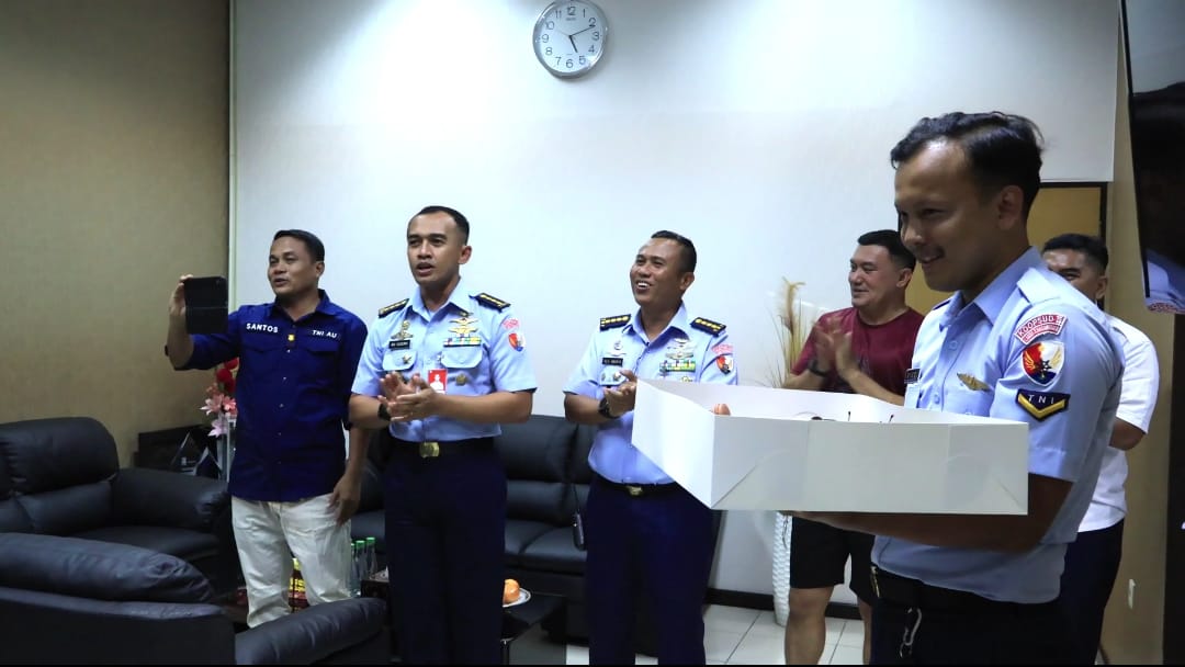 Makassar, transpos.id – Komandan Lanud Sultan Hasanuddin, Marsma TNI Bonang Bayuaji G., S.E., M.M., CHRMP., memberikan kejutan istimewa kepada General Manager PT. Angkasa Pura Indonesia Bandara Sultan Hasanuddin, Bapak Minggus E. T. Gandeguai, yang merayakan Hari Ulang tahunnya pada hari Senin, 30 September 2024, bertempat di Gedung PT. Angkasa Pura Indonesia, Bandara Lama, Kabupaten Maros, Sulawesi Selatan.