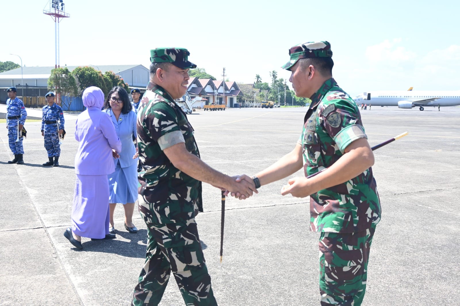 Makassar – Komandan Lanud Sultan Hasanuddin Marsma TNI Arifaini Nur Dwiyanto, M.Han., mengantar keberangkatan Panglima Komando Gabungan Wilayah Pertahanan (Pangkogabwilhan) II Marsdya TNI M. Khairil Lubis beserta rombongan usai melaksanakan Kunjungan Kerja (Kunker), bertempat di Base Ops Lanud Sultan Hasanuddin, Makassar, Jumat (25/7/2025).