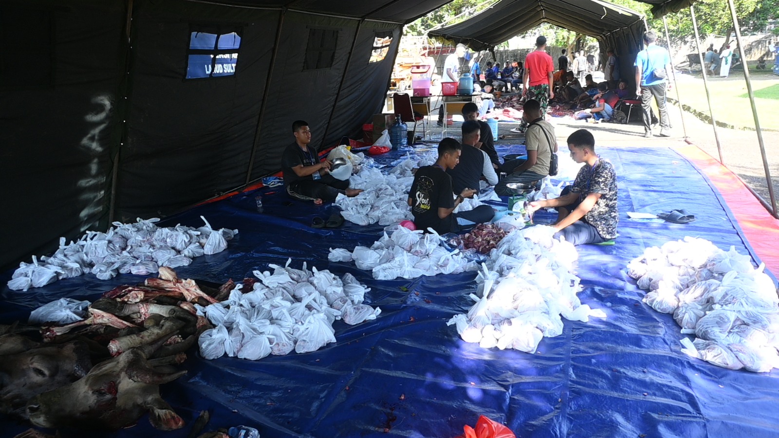 Usai pelaksanaan Sholat Idul Adha, dilanjutkan dengan penyembilahan hewan kurban yang dilaksanakan di Lanud Sultan Hasanuddin. Dalam kesempatan tersebut Marsma TNI Arifaini Nur Dwiyanto menyerahkan secara simbolis hewan kurban berupa satu ekor sapi. Tahun ini, Lanud Sultan Hasanuddin menyembelih 31 ekor hewan qurban terdiri dari 15 ekor sapi dan 16 ekor kambing. Rencana daging qurban akan didistribusikan kepada warga masyarakat kurang mampu di sekitar Lanud Sultan Hasanuddin. (Pen Hnd)