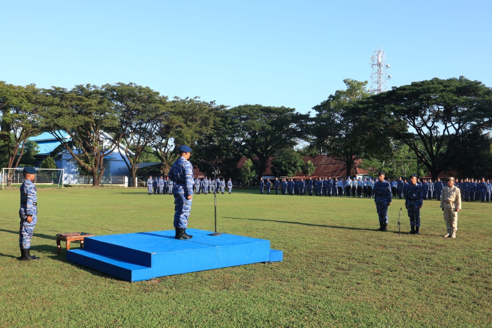 Makassar – Komandan Wing (Danwing) Udara 5 Lanud Sultan Hasanuddin, Kolonel Pnb Hilman. LP Ambarita, M.M.S., mewakili Komandan Lanud (Danlanud) Sultan Hasanuddin, Marsma TNI Arifaini Nur Dwiyanto, M.Han., memimpin Upacara Bendera 17-an yang dilaksanakan rutin setiap bulan, dan diikuti seluruh personel mulai dari para Kepala Dinas, Komandan Satuan, para Perwira, Bintara, Tamtama serta Pegawai Negri Sipil (PNS) Lanud Sultan Hasanuddin, bertempat di Lapangan Mako Lanud Sultan Hasanuddin Makassar, Selasa (17/6/2025).