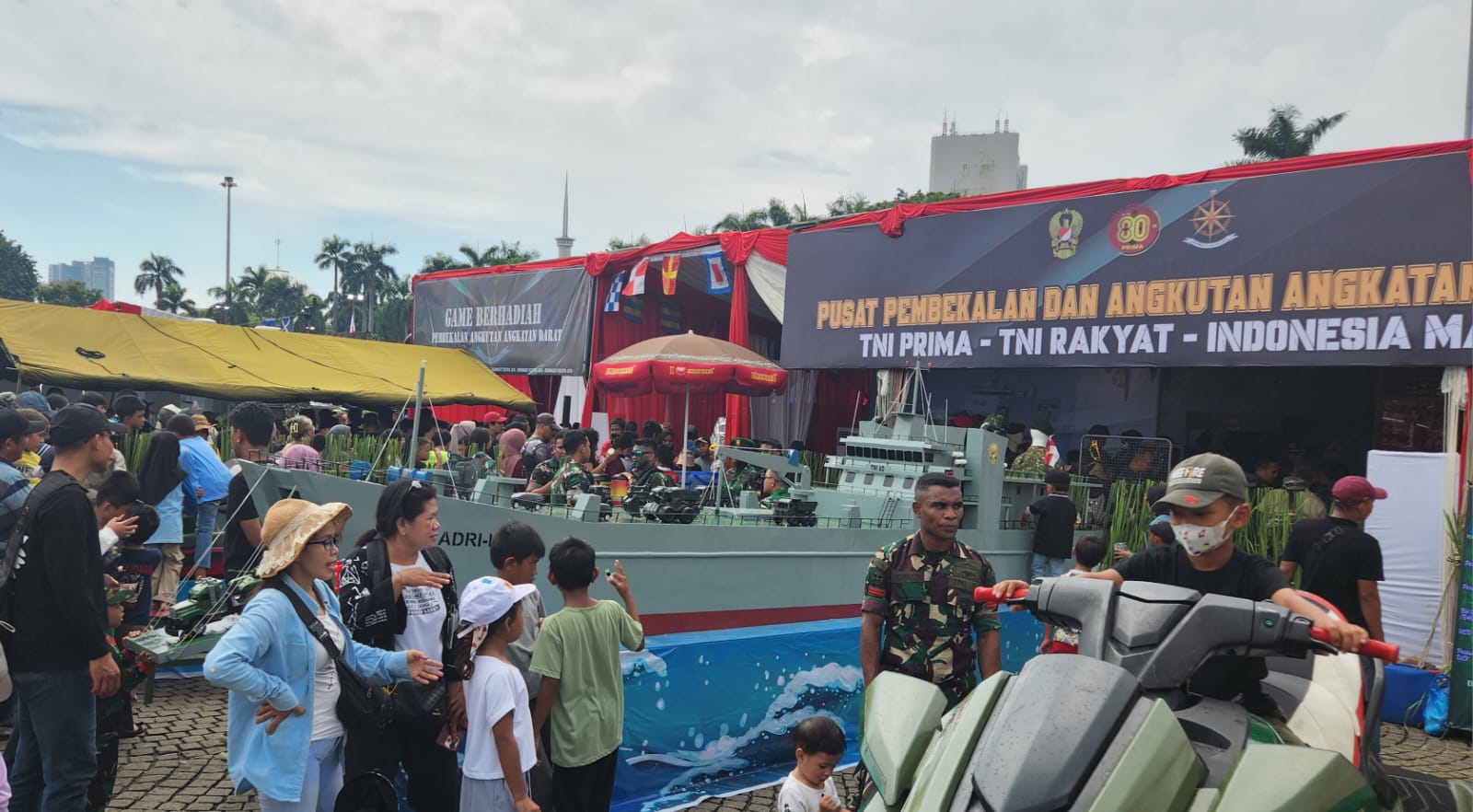 Di area pameran, antusiasme masyarakat terlihat luar biasa. Pengunjung rela mengantri untuk mencoba permainan seru, menikmati makan gratis, hingga membagikan keceriaan bersama keluarga sembari menikmati es krim gratis yang dibagikan TNI AD. Stand-stand TNI AD yang menampilkan alutsista modern, layanan edukasi, hingga rumah sakit lapangan penuh sesak oleh warga yang ingin mengenal lebih dekat peran dan kesiapan prajurit TNI AD.