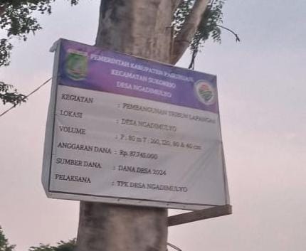 Pasuruan, transpos.id – Kegiatan Pembangunan Tribun Lapangan Bola di Desa Ngadimulyo, Kecamatan Sukorejo Kabupaten Pasuruan dengan menggunakan Dana Desa (DD) Tahun 2024, Pembangunan tribun tersebut lebih baik dari pada tahun sebelumnya yaitu.
