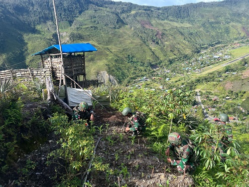 Puncak Jaya – Dalam hal mendukung program pemeritah Satgas Yonif 715/Mfl giatkan program ketahanan pangan di daerah penugasan. Kegiatan ini bertujuan untuk meningkatkan kesejahteraan masyarakat dan mendukung ketahanan nasional terutama di wilayah Puncak Jaya Papua, Minggu (30/03/2025).