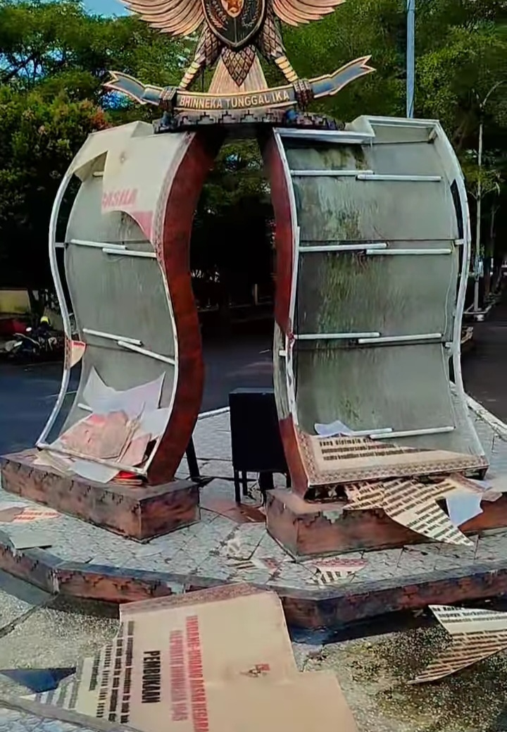 LAMPUNG SELATAN, Transpos.id. – Berdasarkan video yang beredar di media sosial (Medsos) pada Akun FB yang di posting oleh atas nama Rudi Kalianda, pada Sabtu 25 April 2026 dengan berdurasi sekitar 2 menit yang menunjukan Ikon Kalianda Lampung Selatan pada Tugu Pancasila yang sudah dirusak berkeping-keping oleh yang tidak bertanggungjawab.