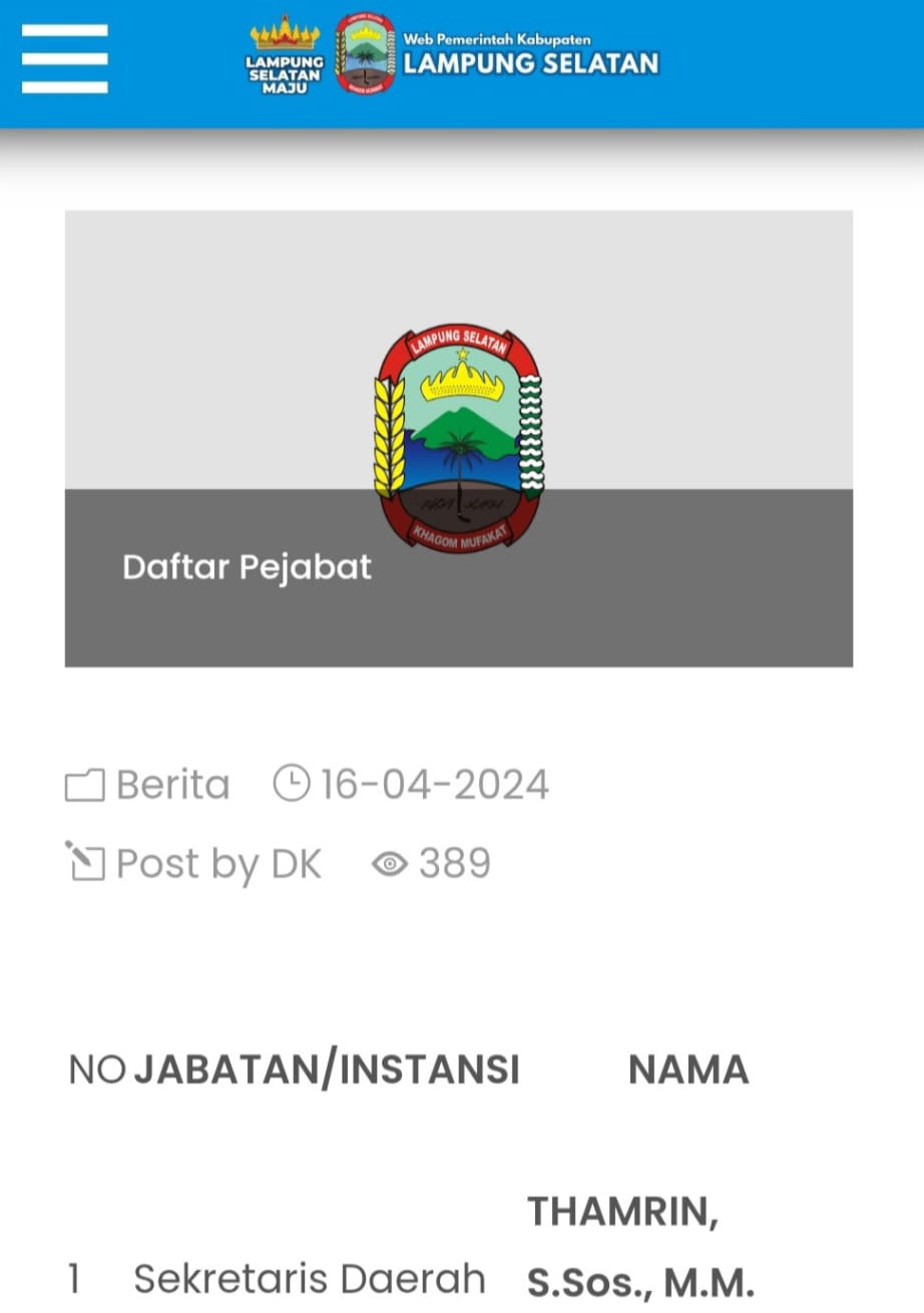 – *Nama-Nama Pejabat*: Banyak nama pejabat yang sudah diganti namun masih tercantum dalam struktur organisasi Pemkab Lampung Selatan, seperti: