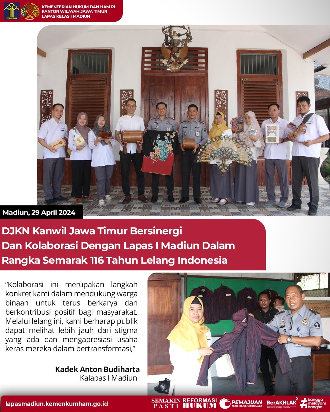 Kepala Lapas I Madiun, Kadek Anton Budiharta mengungkapkan “Kolaborasi ini merupakan langkah konkret kami dalam mendukung warga binaan untuk terus berkarya dan berkontribusi positif bagi masyarakat. Melalui lelang ini, kami berharap publik dapat melihat lebih jauh dari stigma yang ada dan mengapresiasi usaha keras mereka dalam bertransformasi,” Ujarnya.