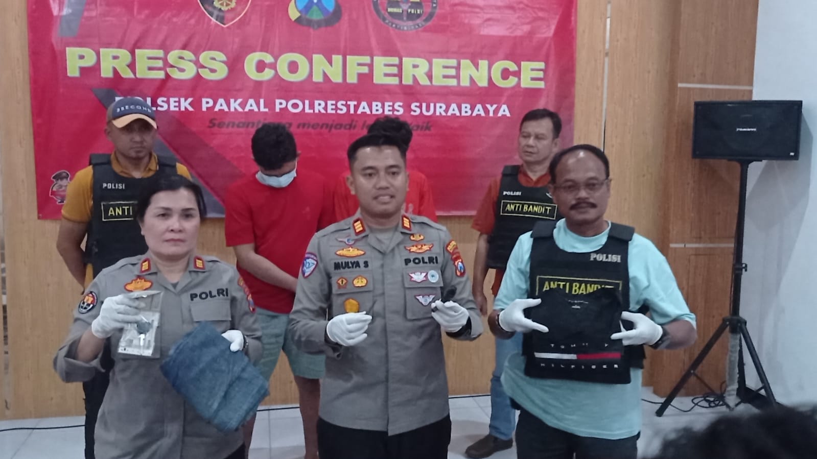 Dalam konferensi pers, Kapolsek Pakal AKP Mulia Sugiarto, menjelaskan bahwa pelaku ini berangkat dengan berboncengan menggunakan sarana sepada motor untuk mencari target, begitu mendapatkan. Pelaku kemudian beraksi dengan cara merusak rumah kontak.