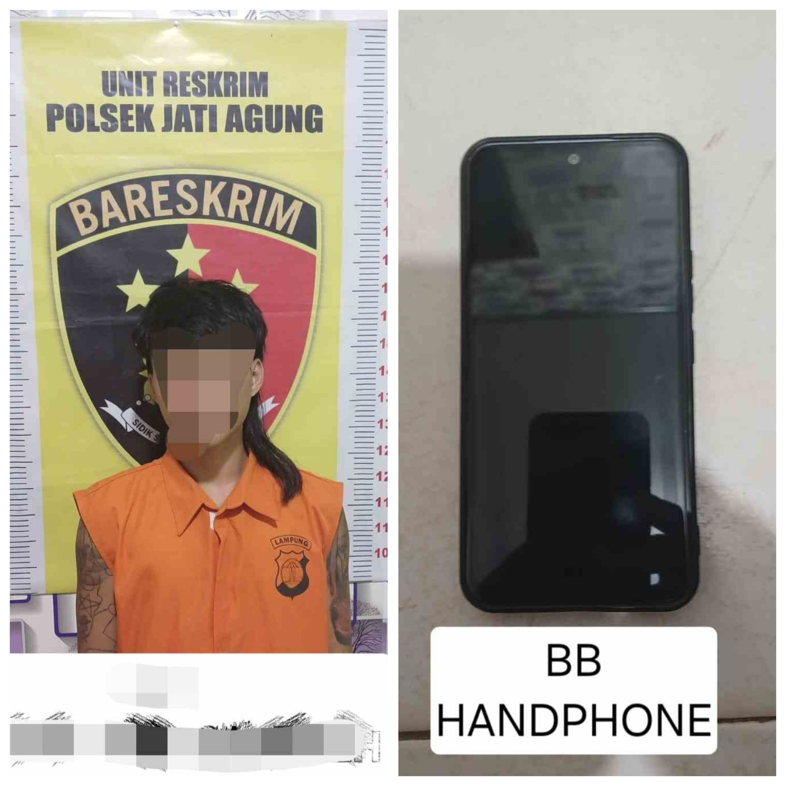 Pihak Polsek Jati Agung memburu pekaku dan melakukan penangkapan terhadap pelaku atas nama F (20) dipersembunyian di daerah Serpong (BSD) dan pelaku RRZ (26) berhasin di bekuk di daeragh Depok.