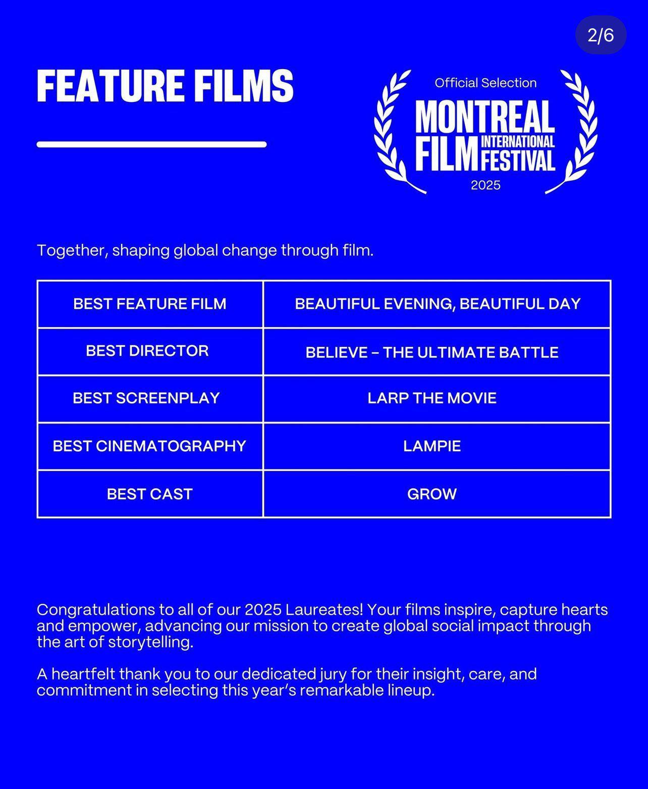 Film Believe Raih Juara Kategori Best Director di Festival Film Internasional Montreal 2025
