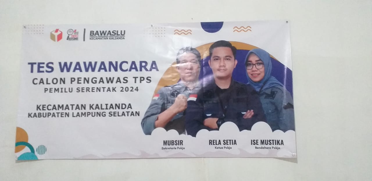 Sementara, Rela Setia selaku Ketua Pokja di kantor itu saat dikonfirmasi dalam hal kegiatan tersebut dan ia mengatakan, “baiklah, dalam pelaksanaan kegiatan tes wawancara ini adalah rangkaian dari tahapan tahapan rekrutmen calon pengawas TPS, yang nanti akan kita tempatkan di sejumlah TPS, yang sudah disipkan TPS TPS yang ada di Desa masing-masing, di Kecamatan Kalianda ini tentunya,” ungkap Rela Setia.