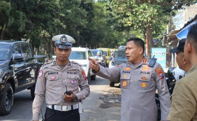 Kapolresta Banyuwangi Kombes Pol. Rama Samtama Putra memimpin langsung koordinasi di lokasi untuk memastikan arus kendaraan berjalan lancar dan aman.