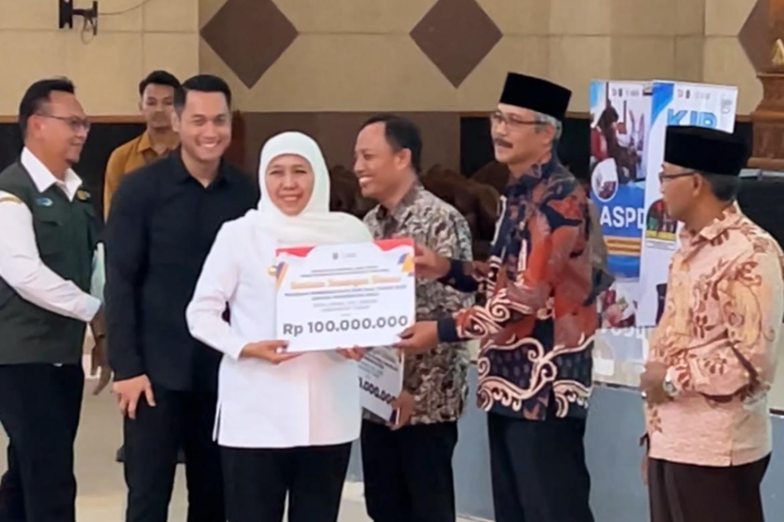 Tuban — Gubernur Jawa Timur, Khofifah Indar Parawansa, menyerahkan bantuan sosial dan pemberdayaan ekonomi kepada warga Kabupaten Tuban dalam kunjungan kerjanya yang berlangsung di Pendapa Kridha Manunggal, Senin (21/7). Didampingi Bupati Tuban, Aditya Halindra Faridzky, S.E., penyaluran ini menandai komitmen Pemerintah Provinsi Jawa Timur dalam memperkuat perlindungan sosial, khususnya bagi kelompok masyarakat miskin ekstrem hingga penyandang disabilitas.