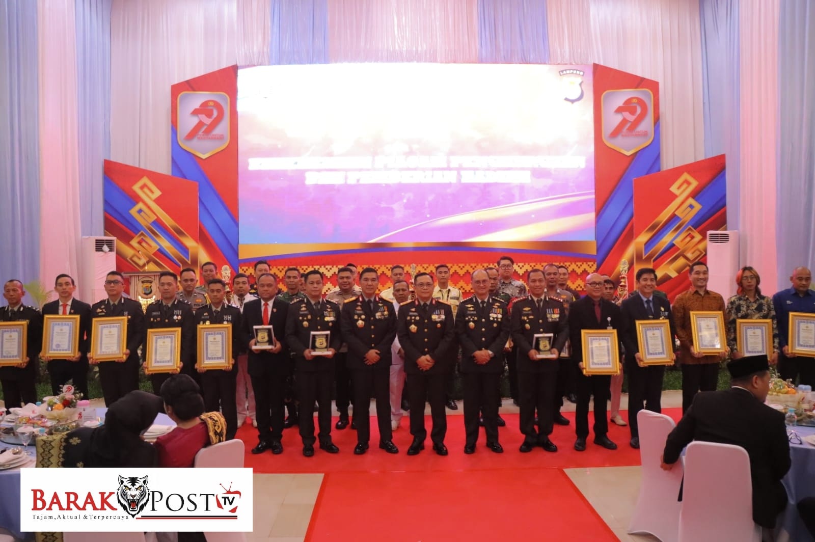 Lampung, Transpos.id. – Dalam rangka syukuran Hari Bhayangkara ke-79, Polda Lampung memberikan penghargaan kepada personel berprestasi yang berhasil mengungkap kasus-kasus menonjol serta mitra media yang aktif mendukung penyebaran informasi edukatif kepada masyarakat. Selasa(2/7/25)