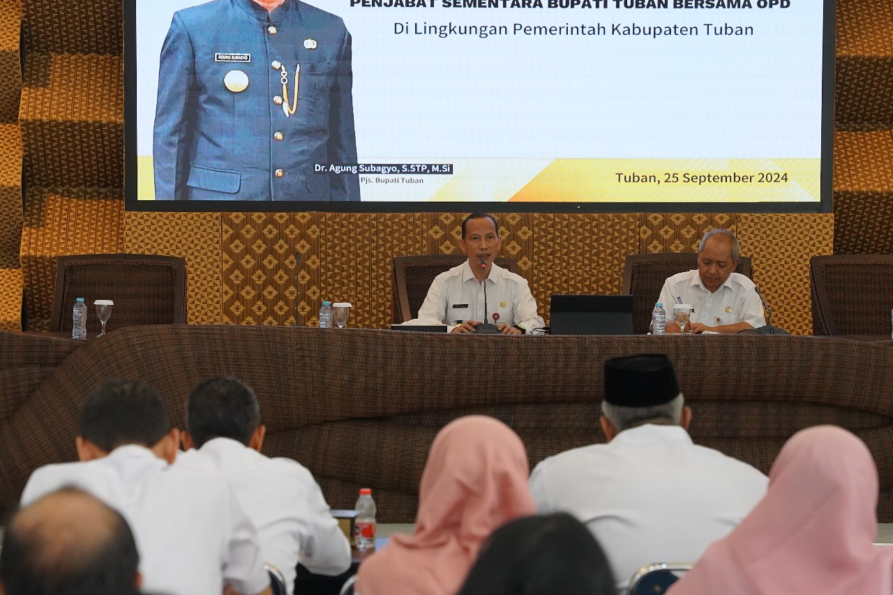 Pjs. Bupati Tuban, Agung Subagyo memohon dukungan dari pimpinan OPD dan Camat dalam menjalankan tugas dan tanggung jawabnya sebagai Penjabat Sementara. Adapun tugas yang diemban sebagai Penjabat Sementara untuk memastikan tata kelola pemerintahan, program pembangunan dan pelayanan publik berjalan baik.