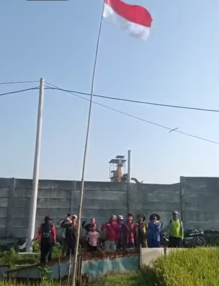 Tampak antusias para petani ini mengibarkan bendera merah putih ditengah sawah dengan penghormatan dan melantunkan lagu Indonesia Raya.