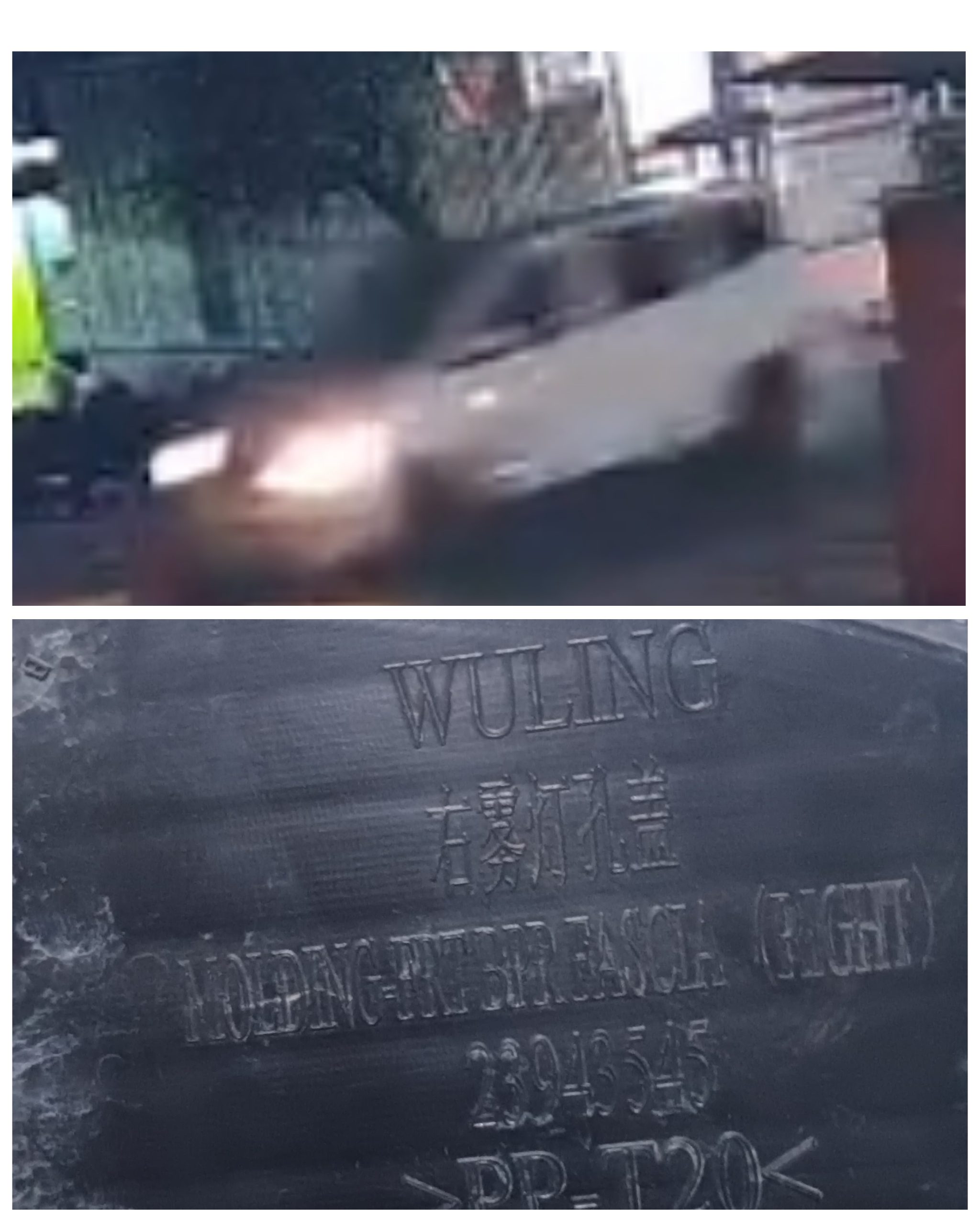 > “Di rekaman terlihat mobil putih, dan di bagian pintu belakang tampak logo kendaraan yang diduga merek Wuling,” ujarnya.