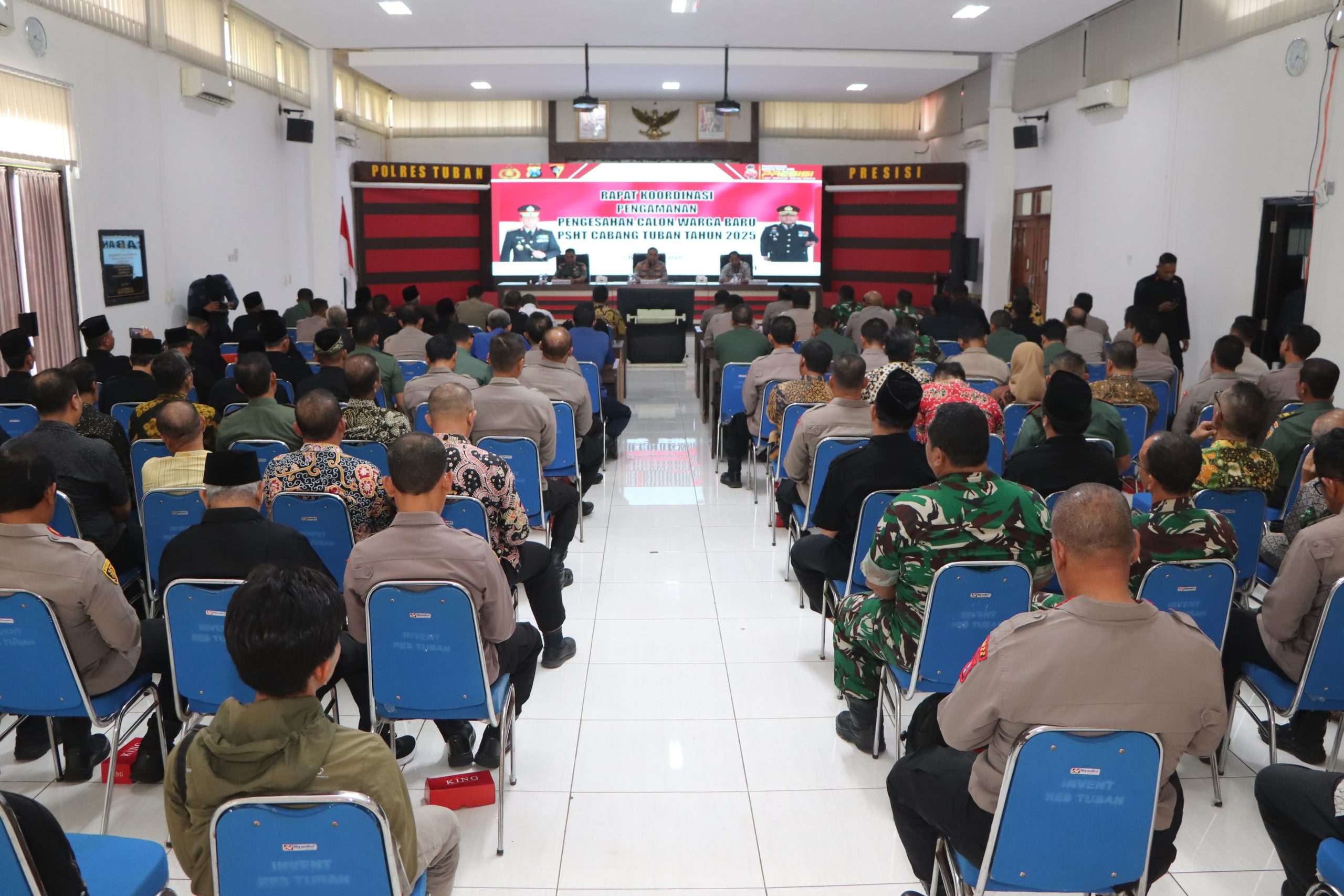 Rapat ini turut dihadiri oleh Pejabat Utama Polres Tuban, para Kapolsek dan Danramil jajaran, perwakilan instansi terkait, Ketua Cabang PSHT Lamidi, serta para Ketua Ranting PSHT se-Kabupaten Tuban.