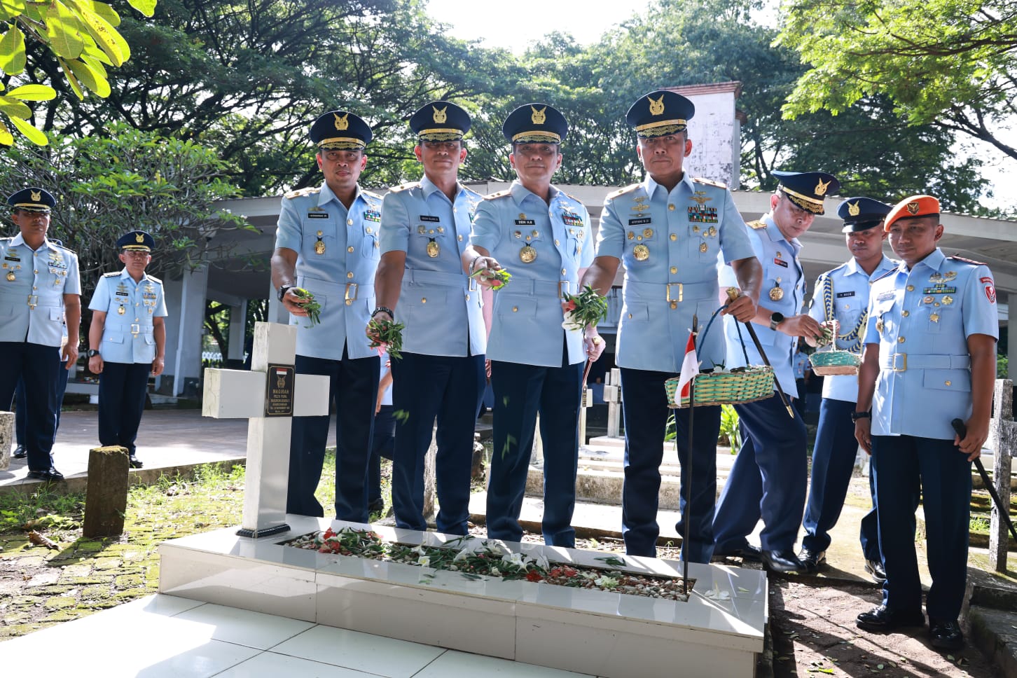 Usai melaksanakan tabur bunga, Danlanud Sultan Hasanuddin, Marsma TNI Arifaini Nur Dwiyanto menyampaikan bahwa kegiatan ini merupakan bagian dari rangkaian tradisi tahunan TNI AU sebagai bentuk penghormatan dan penghargaan kepada para pahlawan yang telah gugur dalam perjuangan membela bangsa dan negara. “Ziarah ini bukan hanya bentuk penghormatan, tapi juga pengingat bahwa kita sebagai generasi penerus memiliki tanggung jawab besar untuk melanjutkan perjuangan dengan menjaga keutuhan NKRI dan mengabdi dengan sepenuh hati,” ujarnya.